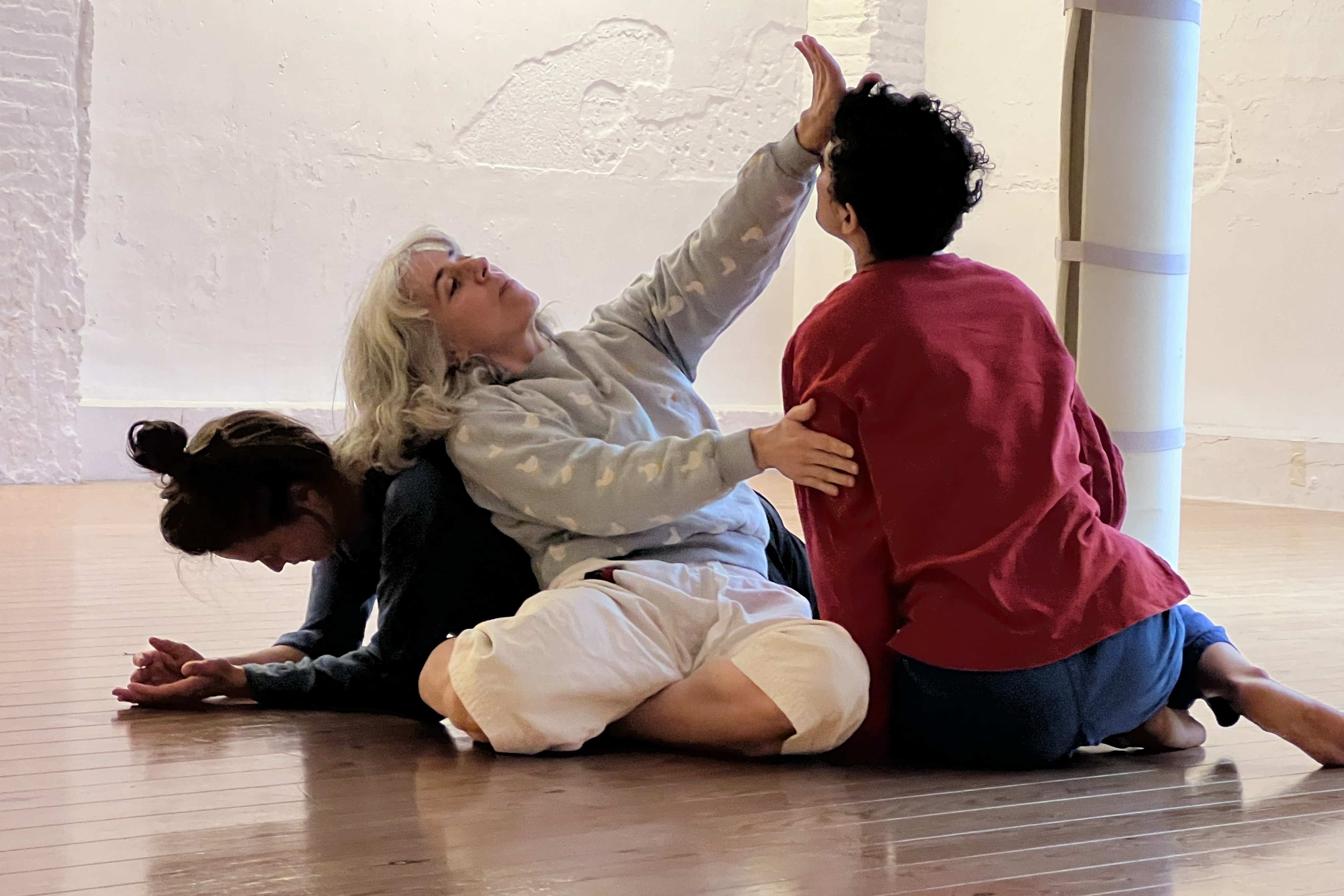 María Mora, María Fernanda Soberón y Majo Villafaina inician su colaboración en 2019. Gracias a una fascinación compartida por el lenguaje y la danza, a través de Odalipo, se invitan a experimentar desde registros individuales hacia un acercamiento colectivo en torno a la transmisión.