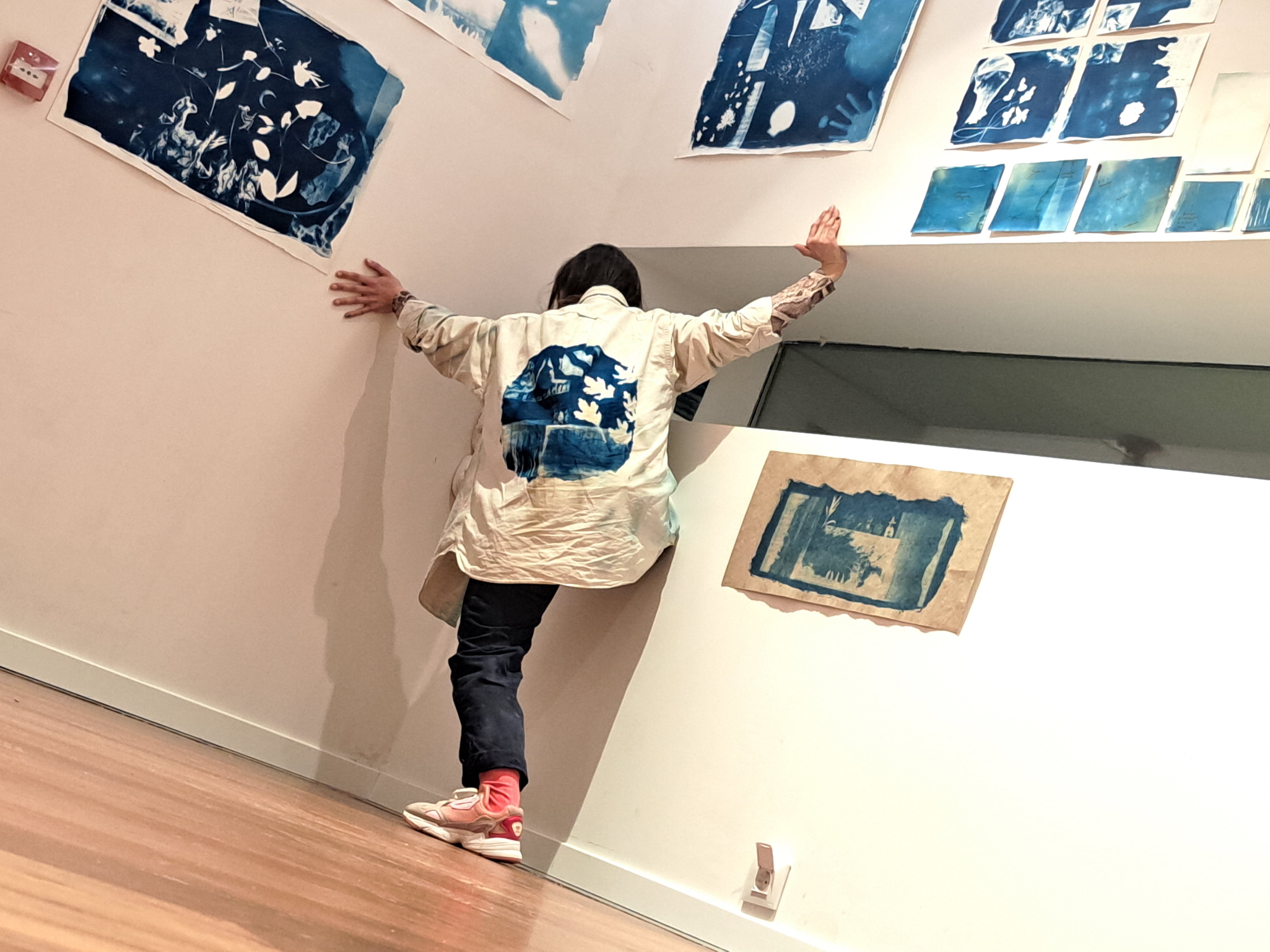 El cos com a negatiu apareix durant el temps d'exposició d'una cianotípia.